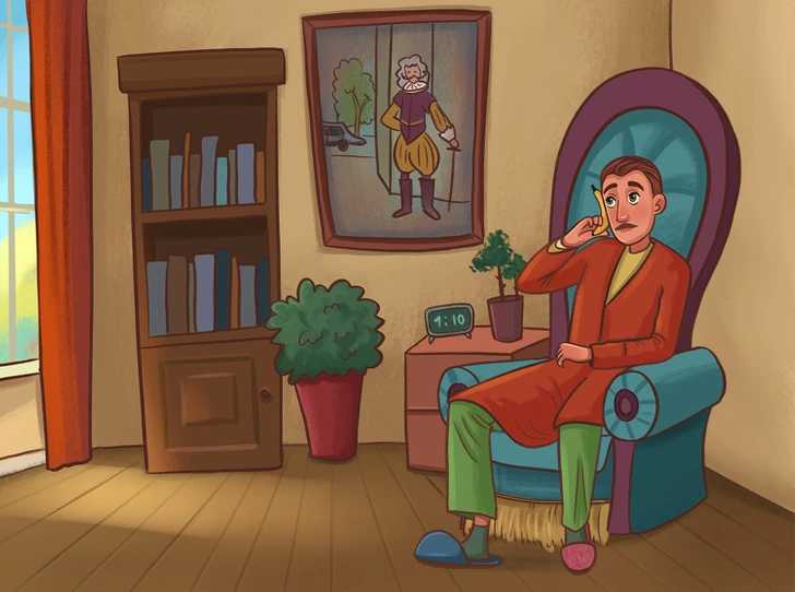 We zien een man in een kamerjas en huisslippers die peinzend uit het raam kijkt terwijl hij in een kamer zit. In eerste instantie denk je misschien: “Nou, wat is hier mis, alles klopt.” Maar daar moet je niet zo zeker van zijn.