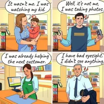 Het enige wat je hoeft te doen is naar de afbeelding hieronder kijken en bepalen wie van de mensen in de winkel iemands portemonnee heeft gestolen. Drie van de afgebeelde mensen vertellen de waarheid, maar één van hen liegt.
