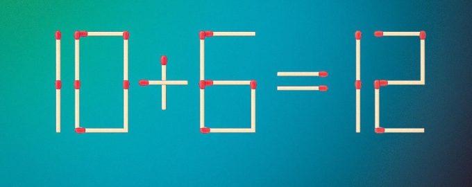 Hieronder zie je een afbeelding waarin de gelijkheid 10+6=12 is uitgelegd met behulp van lucifers. Het is duidelijk dat het wiskundig niet klopt. Je moet het corrigeren.