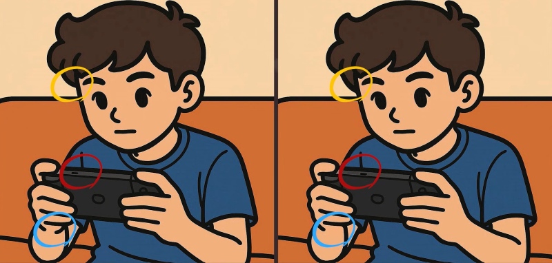 Ben je klaar voor de volgende uitdaging? Kijk eens goed naar twee afbeeldingen van een jongen die videospelletjes speelt. Op het eerste gezicht lijken ze identiek, maar er zijn 3 kleine verschillen. Denk je dat je ze allemaal kunt vinden in 71 seconden? Probeer het en test je visuele scherpte!