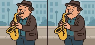 Ben je klaar voor de volgende uitdaging? Kijk eens goed naar twee afbeeldingen van een man die saxofoon speelt. Op het eerste gezicht lijken ze identiek, maar er zijn 3 kleine verschillen. Denk je dat je ze allemaal kunt vinden in 31 seconden? Probeer het en test je visuele scherpte!